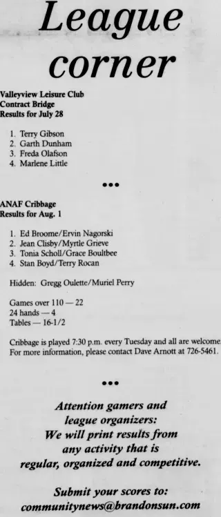 Feel free to check out the 20 clippings found by other Newspaper Archive users. This is a great place to get lost in the stories and exciting highlights in Brandon, Manitoba See what others are searching and saving. Viewing newspaper clippings is free and allows you to see a snapshot of Brandon Sun Community News newspapers.