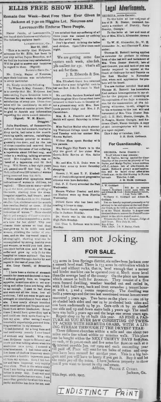 Clippings and Obituaries for Jackson Jacksonian in Jackson, Georgia