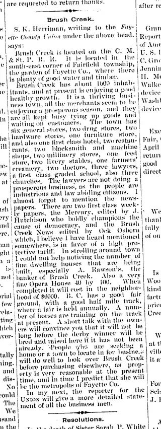 Clippings and Obituaries for Brush Creek Mercury in Brush Creek, Iowa