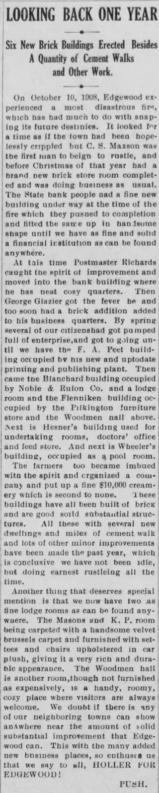 Feel free to check out the 77 clippings found by other Newspaper Archive users. This is a great place to get lost in the stories and exciting highlights in Edgewood, Iowa See what others are searching and saving. Viewing newspaper clippings is free and allows you to see a snapshot of Edgewood Journal newspapers.