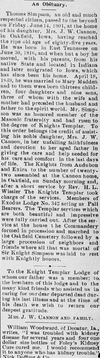 Clippings and Obituaries for Audubon County Journal in Exira, Iowa