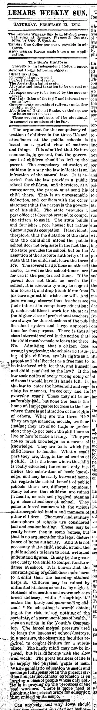 Experience the history of Le Mars, Iowa by diving into Le Mars Weekly Sun newspapers. Read news, discover ancestors, and relive the past as you search through Le Mars Weekly Sun archives.