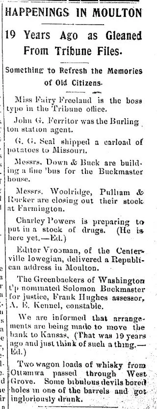 Feel free to check out the 22 clippings found by other Newspaper Archive users. This is a great place to get lost in the stories and exciting highlights in Moulton, Iowa See what others are searching and saving. Viewing newspaper clippings is free and allows you to see a snapshot of Moulton Tribune newspapers.