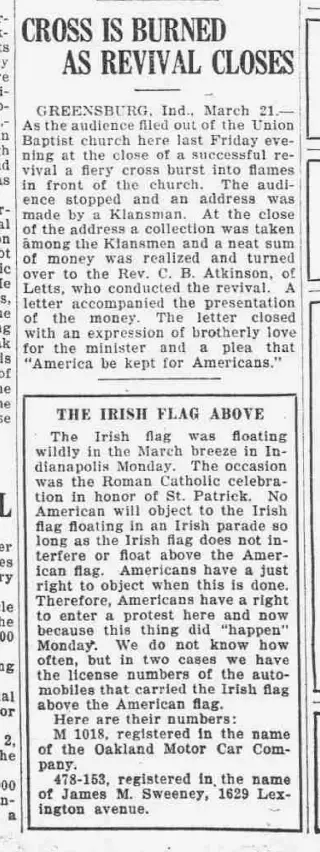 Clippings and Obituaries for Indianapolis Fiery Cross in Indianapolis, Indiana