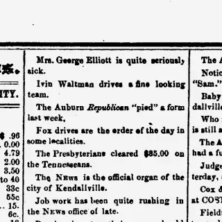 Browsing Kendallville Weekly News issues, you are likely to find an abundance of historical news articles. If you run into any roadblock, we are always happy to assist you through our help center. Or you can check out the FAQs below.