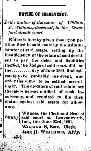Clippings and Obituaries for Leavenworth Crawford County Democrat in Leavenworth, Indiana