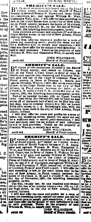 Clippings and Obituaries for New Albany Weekly Ledger in New Albany, Indiana