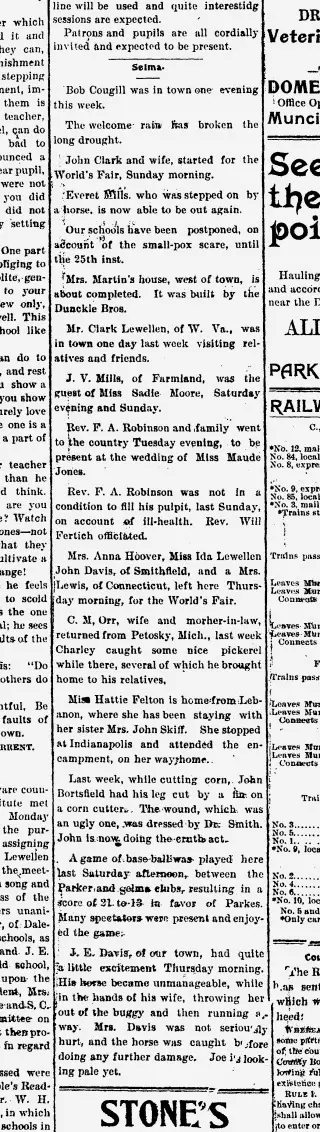 Clippings and Obituaries for Parker News in Parker, Indiana