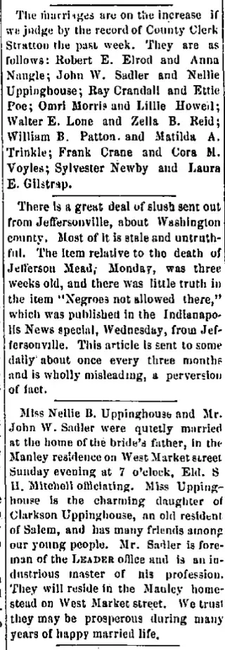 Feel free to check out the 37 clippings found by other Newspaper Archive users. This is a great place to get lost in the stories and exciting highlights in Salem, Indiana See what others are searching and saving. Viewing newspaper clippings is free and allows you to see a snapshot of Salem Leader newspapers.