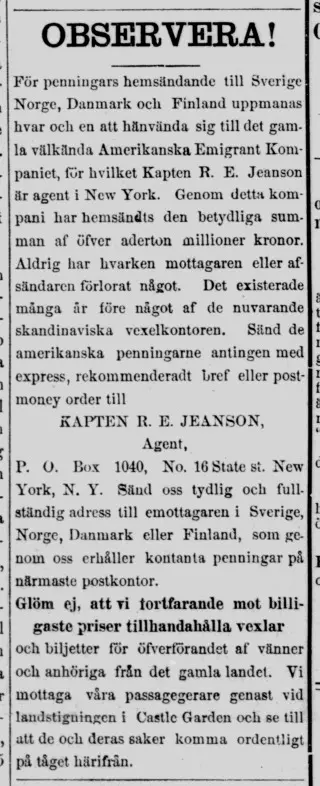 Searching newspapers on Newspaper Archive is free! Dig through 480 issues from Salina Svenska Harolden and more than a billion historical news articles worldwide. If you aren’t yet subscribed, you can look at newspaper content from the clippings and you can get access to all the newspaper images with a free trial.