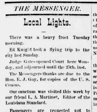 Feel free to check out the 8 clippings found by other Newspaper Archive users. This is a great place to get lost in the stories and exciting highlights in Saint Martinville, Louisiana See what others are searching and saving. Viewing newspaper clippings is free and allows you to see a snapshot of Saint Martinville Weekly Messenger newspapers.