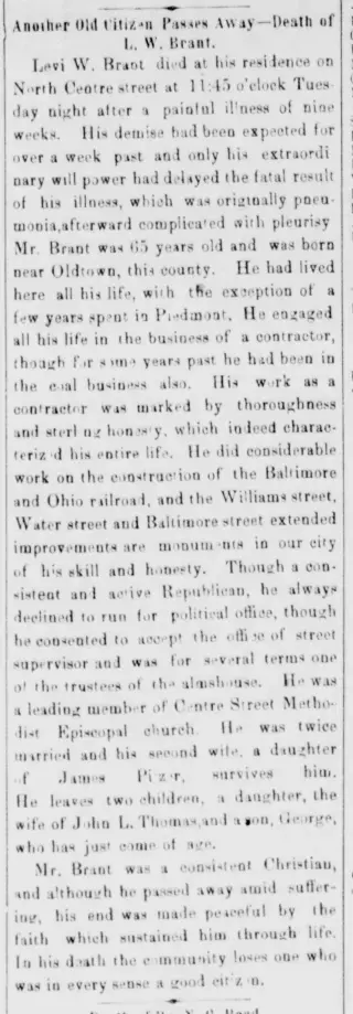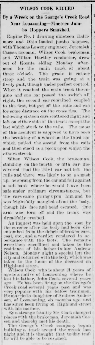 Clippings and Obituaries for Cumberland Sunday Civilian in Cumberland, Maryland