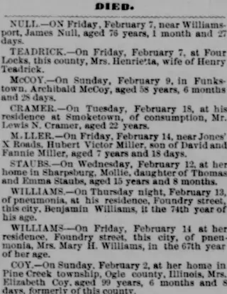 Clippings and Obituaries for Hagerstown Herald And Torch Light in Hagerstown, Maryland