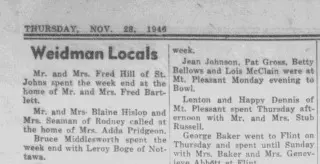 Clippings and Obituaries for Weidman Dispatch in Weidman, Michigan