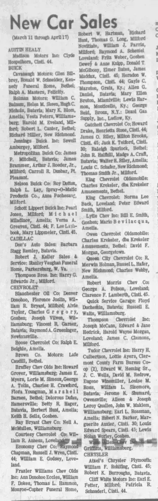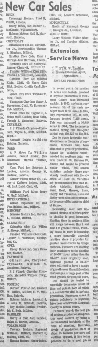 Feel free to check out the 1,000 clippings found by other Newspaper Archive users. This is a great place to get lost in the stories and exciting highlights in Batavia, Ohio See what others are searching and saving. Viewing newspaper clippings is free and allows you to see a snapshot of The Clermont Courier newspapers.
