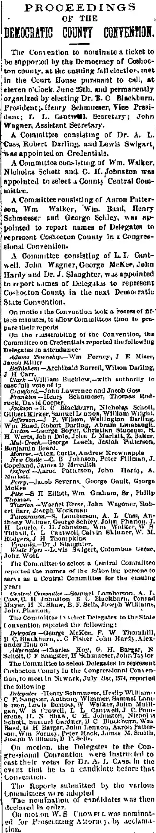 Experience the history of Coshocton, Ohio by diving into Coshocton Democrat newspapers. Read news, discover ancestors, and relive the past as you search through Coshocton Democrat archives.