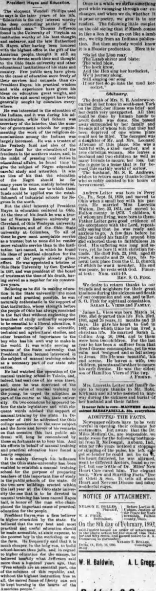 Clippings and Obituaries for Delta Atlas in Delta, Ohio