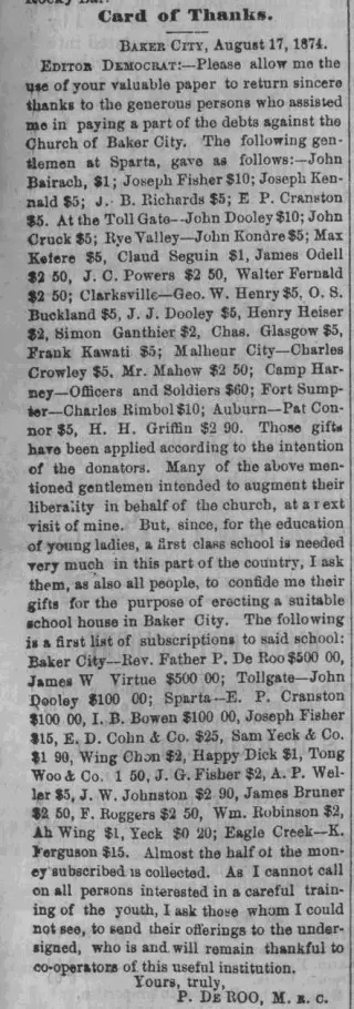 Browsing Baker City Bedrock Democrat issues, you are likely to find an abundance of historical news articles. If you run into any roadblock, we are always happy to assist you through our help center. Or you can check out the FAQs below.