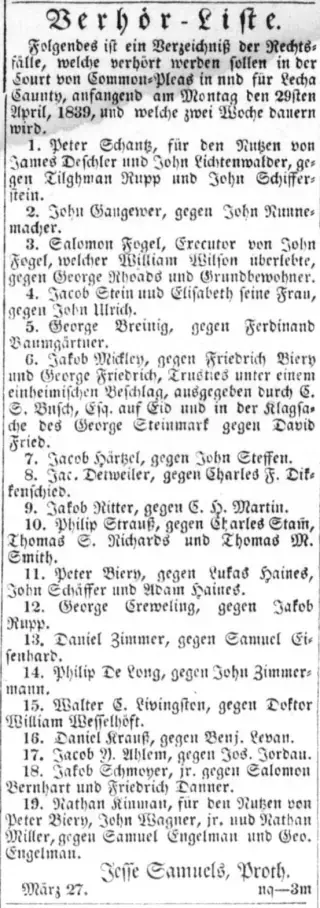 Allentown Der Lecha Patriot Und Northampton Demokrat Newspaper Archives (1839-1848)