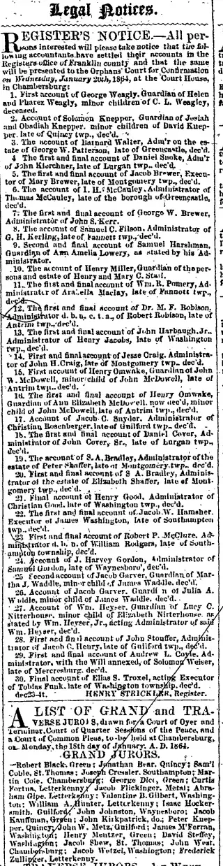 Chambersburg Franklin Repository Newspaper Archives (1863-1865)