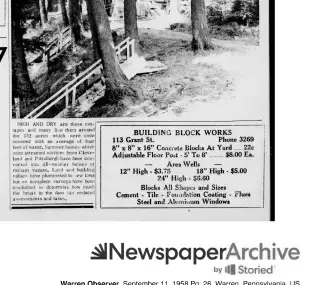 Feel free to check out the 78 clippings found by other Newspaper Archive users. This is a great place to get lost in the stories and exciting highlights in Warren, Pennsylvania See what others are searching and saving. Viewing newspaper clippings is free and allows you to see a snapshot of Warren Observer newspapers.