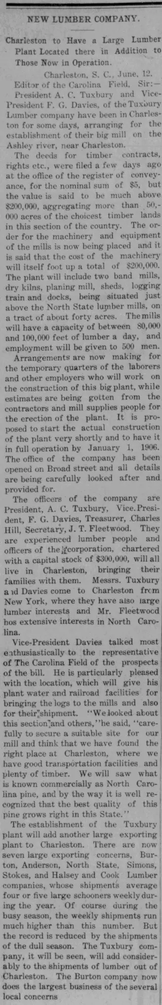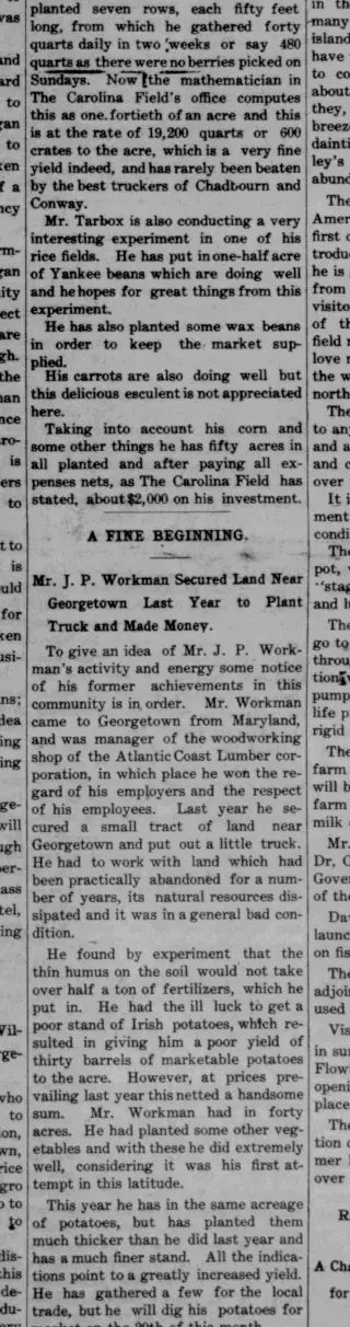 Georgetown Carolina Field Newspaper Archives (1905)