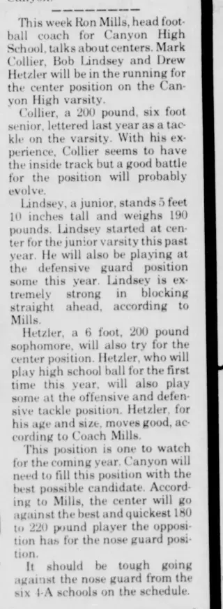 Clippings and Obituaries for Canyon Sunday News in Canyon, Texas