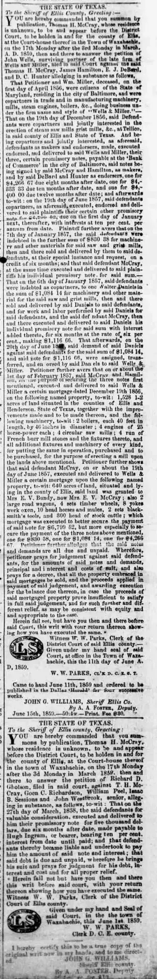 Searching newspapers on Newspaper Archive is free! Dig through 2,505 issues from Dallas Herald and more than a billion historical news articles worldwide. If you aren’t yet subscribed, you can look at newspaper content from the clippings and you can get access to all the newspaper images with a free trial.