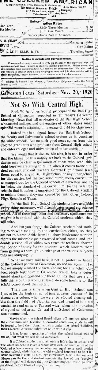 Galveston Colored American Newspaper Archives (1920)