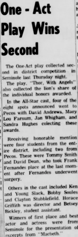Feel free to check out the 2 clippings found by other Newspaper Archive users. This is a great place to get lost in the stories and exciting highlights in Pecos, Texas See what others are searching and saving. Viewing newspaper clippings is free and allows you to see a snapshot of The Pecos Independent And Enterprise newspapers.