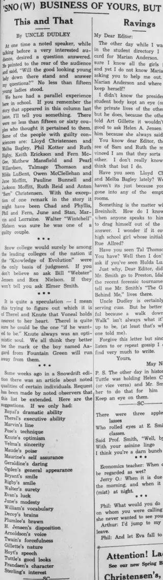 Experience the history of Ephraim, Utah by diving into Ephraim Snowdrift newspapers. Read news, discover ancestors, and relive the past as you search through Ephraim Snowdrift archives.