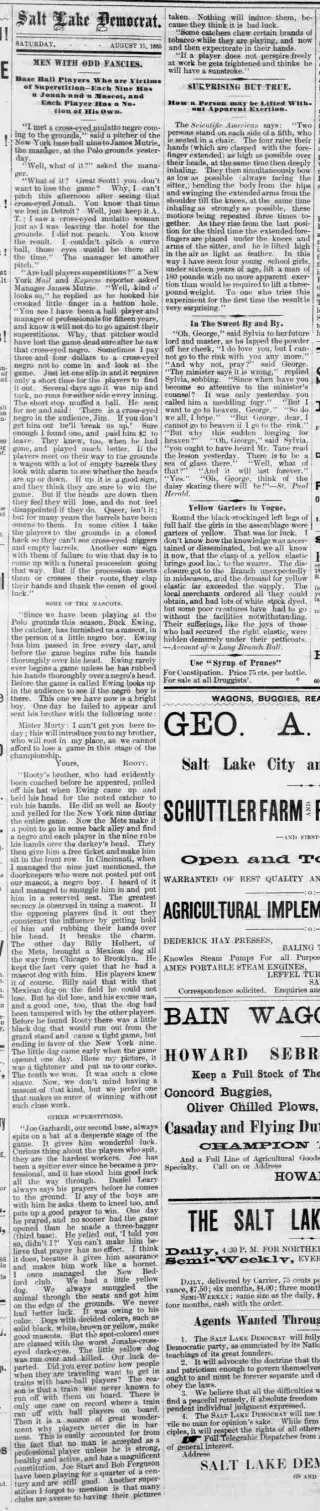 Browsing Salt Lake Evening Democrat issues, you are likely to find an abundance of historical news articles. If you run into any roadblock, we are always happy to assist you through our help center. Or you can check out the FAQs below.