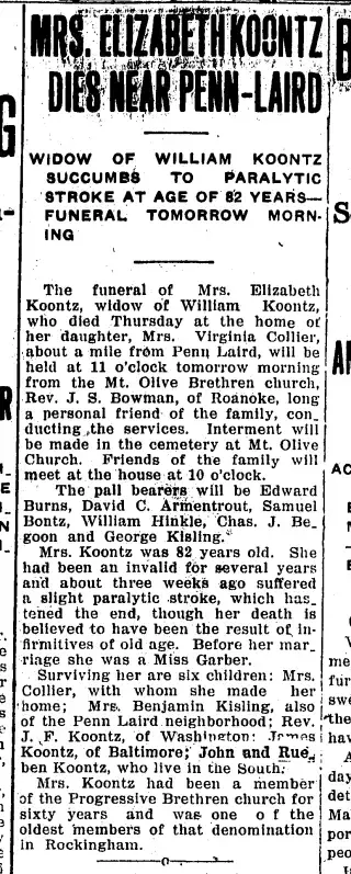 Clippings and Obituaries for Rockingham Daily Record in Harrisonburg, Virginia