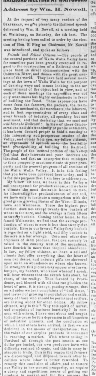 Explore 21 years of history through 2,630 issues from Walla Walla Statesman. You may find an unexpected story or a missing ancestor. You can navigate through the years below, or you can narrow your results by searching with a keyword or name.