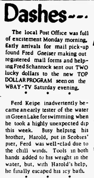 Clippings and Obituaries for Green Lake County Reporter in Green Lake, Wisconsin